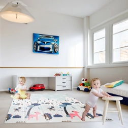 Ontdek een multifunctionele mat die in de kinderkamer eenvoudig een tapijt kan vervangen en tegelijk een decoratief element toevoegt. De mat is gemaakt van kwaliteitsfoam, biedt bescherming tegen kou en dempt schokken. Dankzij het dubbelzijdige ontwerp met bos- en straatmotieven is hij ideaal voor kleine ontdekkers.