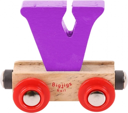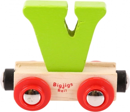 De houten wagon met de letter V is een leuke uitbreiding voor elke treinbaan en ondersteunt spelenderwijs het leren van het alfabet. Dankzij de magnetische koppelingen koppel je hem moeiteloos aan andere wagons en locomotieven. De letter kan van de wagon worden gehaald en met andere letters worden gecombineerd, zodat kinderen namen, woorden of berichtjes kunnen maken.