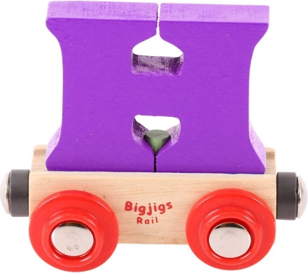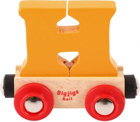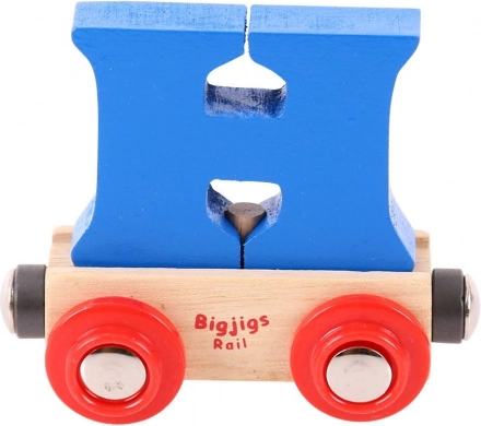 Deze kleurrijke wagon met een afneembare letter H breidt elke houten treinbaan uit en maakt het mogelijk namen, opschriften of wensen te maken voor verjaardagen, naamdagen en Kerst. De letter is afneembaar en uitwisselbaar met andere letters, zodat je samenstellingen eenvoudig kunt aanpassen.
