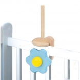 De elegante houten houder voor het ophangen van een babymobiel is ontworpen voor snelle montage en stevige bevestiging aan de spijlen van het ledikant. Massief hout zorgt voor stabiliteit en een lange levensduur, terwijl het decoratieve element met een bloemetje het ledikant een speels accent geeft.