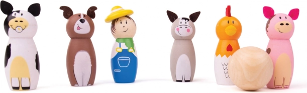 Kinderen zijn dol op het spel met de houten boerderijkegels, die steeds weer uitnodigen om om te gooien en opnieuw op te zetten. Deze kleurrijke set is ideaal om samen met familie of vrienden te spelen. De robuuste constructie van kwaliteitshout voldoet aan alle Europese veiligheidsnormen.
