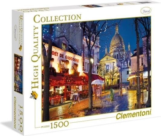 Ontdek de charme van Parijs met deze prachtige puzzel die de avondlijke sfeer van de historische wijk Montmartre vastlegt. Als je graag puzzelt, is deze puzzel met 1500 stukjes de perfecte keuze voor jou.