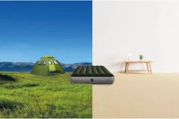 Dankzij het praktische 2-in-1 ventiel blaas je het luchtbed in enkele minuten eenvoudig op en laat je het net zo snel weer leeglopen. Na het leeglaten is het compact en licht, zodat je het gemakkelijk in een kast, reistas of kofferbak kunt opbergen. Een uitstekende oplossing voor logés, kamperen, het vakantiehuis en de tuin.