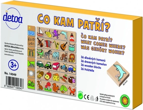 Detoa houten puzzel Waar hoort wat thuis is een didactisch spel dat kinderen helpt voorwerpen te herkennen en ze aan het juiste plaatje te koppelen. Dit spel is ideaal om het logisch denken en geheugen te verbeteren bij kinderen vanaf 3 jaar.
