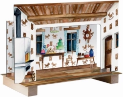 • Verwisselbare decors – het bos en het kamertje van het peperkoekhuisje.