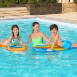 Bezorg kinderen eindeloos zomers waterplezier. Het opblaasbare board in de vorm van een surfplank biedt zekerheid en comfort tijdens spel en de eerste zwemproberen. Dankzij twee ergonomische handgrepen houden kinderen zich makkelijk vast en voelen zij zich veiliger in het water.