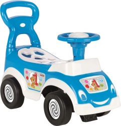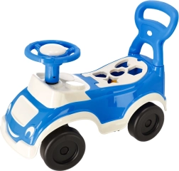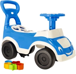 Praktische 4-in-1 loopauto van Pilsan in blauwe kleur, combineert rijden, duwen, looptrainer en educatieve vormensorteerder. Biedt een veilige rugleuning die afneembaar is, een mechanische claxon, opbergruimte onder de zitting en hoogwaardige, kindvriendelijke materialen. Stimuleert motoriek, balans en coördinatie van kinderen, voor plezierig rijden binnen en buiten.