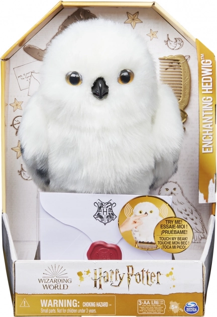 Ontdek de magische wereld met de interactieve uil Hedwig uit de Harry Potter-collectie. Deze superzachte pluchen uil van 30 cm kan haar kop tot 270° draaien, met haar vleugels slaan en reageren op de toon van je stem. Ze neemt brieven en boodschappen in haar snavel, antwoordt met expressieve geluiden en is dankzij de 3 AA-batterijen in de verpakking direct speelklaar.