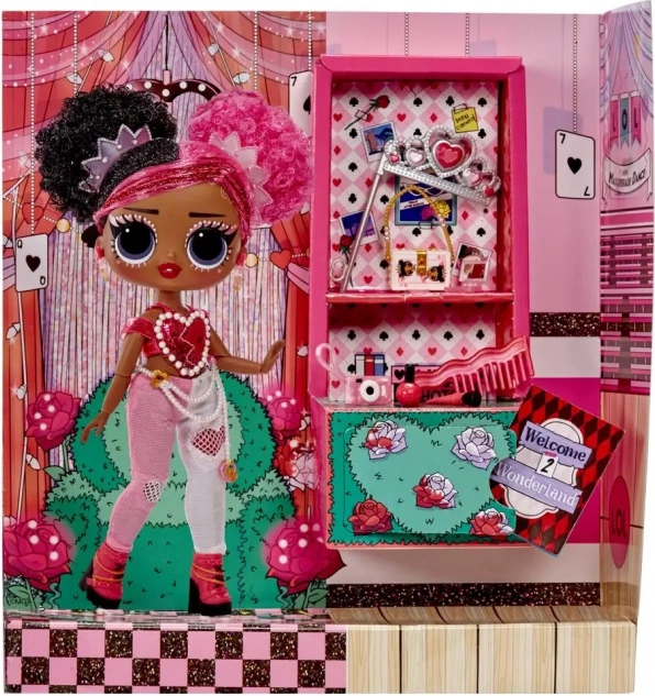 De L.O.L. Surprise Tweens Regina Hartt pop komt in een opvallende zwart‑roze stijl met parels, hartjes en glinsterende details. Ze is klaar om te stralen op het gemaskerde bal en zal alle liefhebbers van modieuze accessoires, verkleden en styling blij maken.