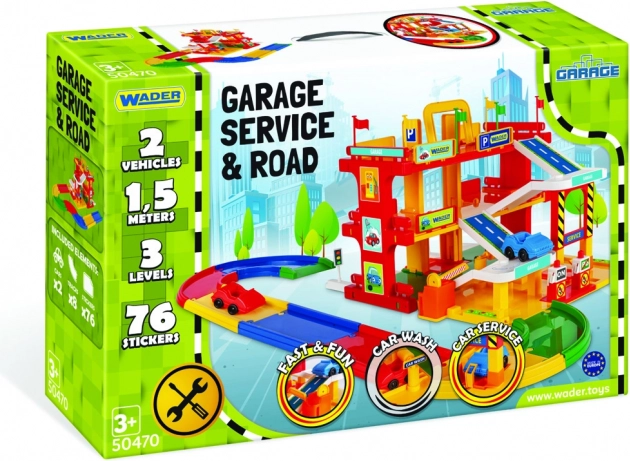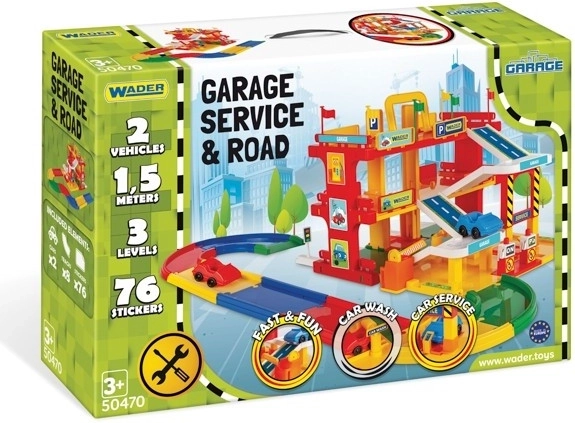 Ontdek de Garage Service van Wader, het droomspeelgoed voor kleine automobilisten. Kleurrijke en eenvoudig te monteren constructie met een realistisch ontwerp voor creatief spel en het ontwikkelen van kinder vaardigheden.