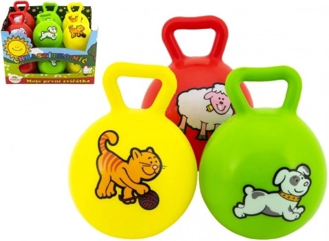 Een kat, hond of schaap op kleurrijke balletjes trekken de aandacht en ondersteunen de visuele waarneming.