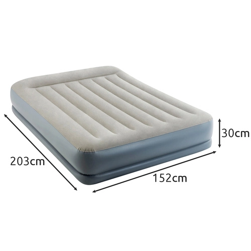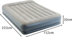 Opblaasbaar velours luchtbed INTEX Pillow Rest Mid-Rise, tweepersoons met elektrische pomp 203 × 152 × 30 cm