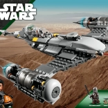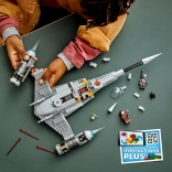 De jager is uitgerust met een cockpit voor een minifiguur, ruimte voor Grogu, een laadruimte en realistische details zoals draaiende motoren.