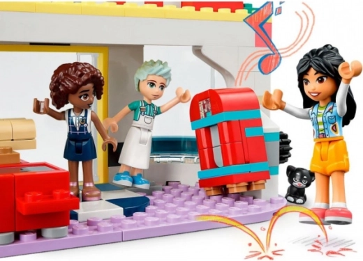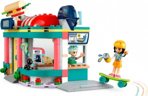 Bouw je eigen restaurant met de kleurrijke set LEGO Friends Bar in het centrum van Heartlake, met een drive‑through loket, buiten zitplaats, arcadekast en een verplaatsbare jukebox. Kinderen kunnen sandwiches uit de koelkast bereiden, klanten bedienen en op de skateboard rijden – en misschien komt er ook een sluwe kat op bezoek!