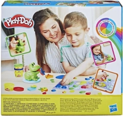 Stap de wereld van creativiteit binnen met de set Play-Doh Starters kikker – kleuren leren. Kinderen drukken een lange, grappige tong uit de kikker, maken vlinders, slakken en vliegjes met de vormpjes en leren op kleur sorteren op de meegeleverde onderlegger. Inclusief 4 potjes Play-Doh klei en veilige tools voor kleine handjes.