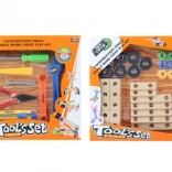 Kunststof gereedschapsset is ideaal voor kleine doe-het-zelvers. Bevat een hamer, tang, schroevendraaier, sleutel, mes en andere accessoires die kinderen helpen hun motorische vaardigheden te ontwikkelen tijdens het spelen.