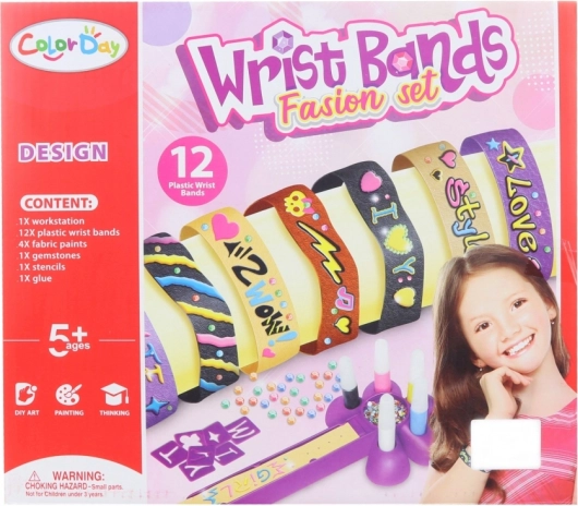Creatieve armband-maakset voor kinderen: 12 linten, sjablonen, kleuren, steentjes en standaard. Eenvoudig knutselen, stimuleert creativiteit. Leeftijd 5+.