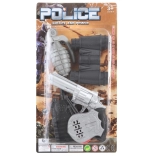 Complete politieset voor kleine wetsdienaars met veilige accessoires voor creatief spel. Bevat een zuignappistool, 3 zuignapkogels, een granaat, een walkietalkie, een verrekijker en een badge. Ideaal voor kinderen vanaf 3 jaar, gemaakt van duurzaam plastic.