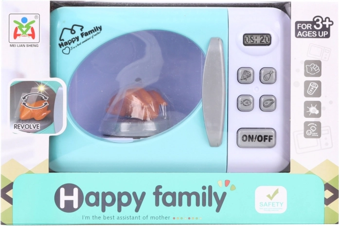 De HAPPY FAMILY kinder-magnetron brengt realistisch speelplezier naar elke kinderkitchen. Dankzij lichteffecten en een draaiend bord kunnen kinderen ervaren hoe een echte magnetron werkt en zo fijne motoriek, verbeeldingskracht en rollenspel ontwikkelen.