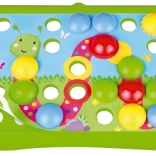 Ontdek creatief spel dat zowel de fantasie als vaardigheden ontwikkelt. Kinderen plaatsen kleurrijke pinnetjes in sjablonen met natuurmotieven (bijv. rups, bloemen of dieren) en oefenen nauwkeurigheid, geduld en kleurherkenning. Grote gaten en pinnetjes liggen goed in de hand en maken het hanteren voor kleine handjes makkelijker.
