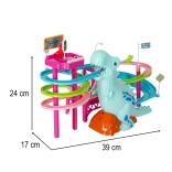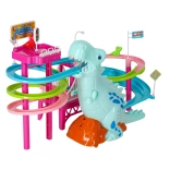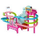 Racebaan dinosaurus met glijbaan, bewegende trap, LED en geluid