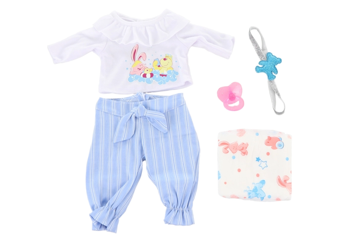 Geef je pop een nieuwe outfit en kinderen eindeloze speelmogelijkheden. De outfit is ontworpen voor poppen met een hoogte van ongeveer 45 cm en past bij de meeste gangbare poptypen in dit formaat. Dankzij de doordachte snit is aan- en uitkleden eenvoudig, ook voor jongere kinderen.