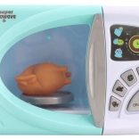 Deze kindermagnetron in turquoise met wit is de ideale aanvulling op elke speelkeuken. Na het inschakelen draait het plateau en het spel wordt begeleid door lichteffecten die een echt apparaat natuurgetrouw nabootsen.