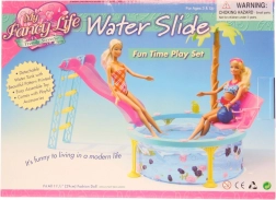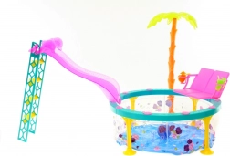 Glorie zwembad met glijbaan is het ideale speelgoed voor kleine kinderen die graag met poppen spelen. Deze set bevat alles wat nodig is voor plezierig zwemmen en glijden.