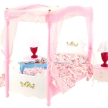 Dit gedetailleerde hemelbed verandert de poppenkamer in een knus koninkrijk. Dankzij de rijke accessoires en de werkende lampjes beleven kinderen veel realistische scènes en plezier. De hoogwaardige kunststof uitvoering zorgt voor duurzaamheid en eenvoudig onderhoud.