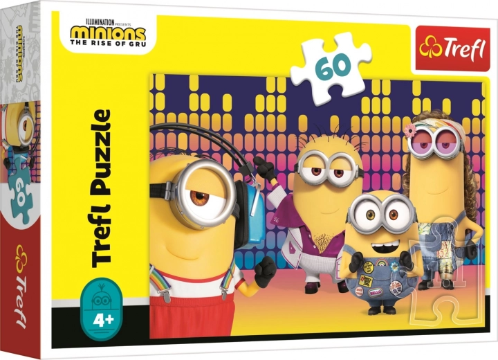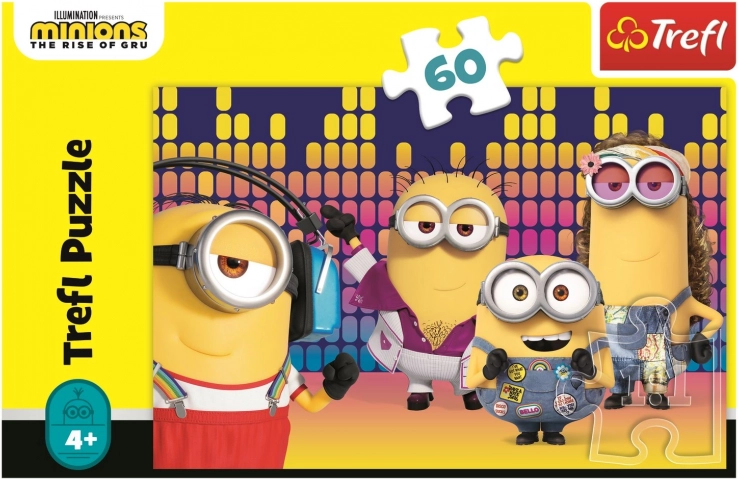 TREFL-puzzel met MINIONS-motief, 60 stukjes. Afmeting afbeelding 33 × 22 cm, voor kinderen vanaf 4 jaar. Plezier, geheugentraining en logica voor kleine fans.