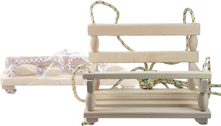 Dankzij het draagvermogen van 80 kg is de schommel geschikt voor een brede leeftijdsgroep. De sterke ophangtouwen maken eenvoudige bevestiging aan een balk, schommelstandaard of plafondhaken mogelijk. Natuurlijk hout past prachtig in zowel interieur als exterieur en is eenvoudig te onderhouden. De praktische verpakking in een zak vergemakkelijkt transport en opslag.