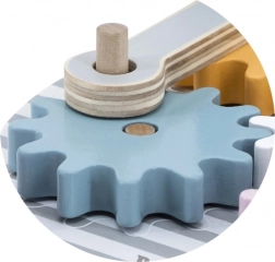 Kinderen kunnen coördinatie en logisch denken oefenen dankzij de leuke tandwielblokken die de andere in beweging zetten.