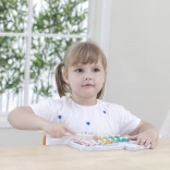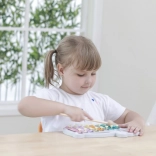 Acht pastelkleurige toetsen stimuleren kinderen om tonen, ritme en eenvoudige melodieën te ontdekken. Perfect voor de ontwikkeling van auditieve waarneming en creativiteit.
