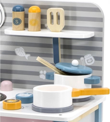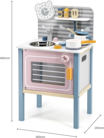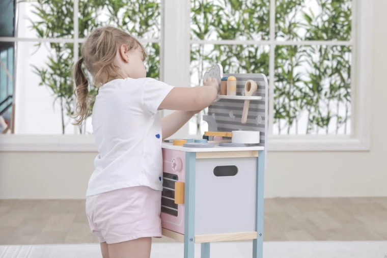 De keuken is ontworpen voor veilig spelen door kinderen vanaf drie jaar en ondersteunt de ontwikkeling van de fijne motoriek en imitatiespel.