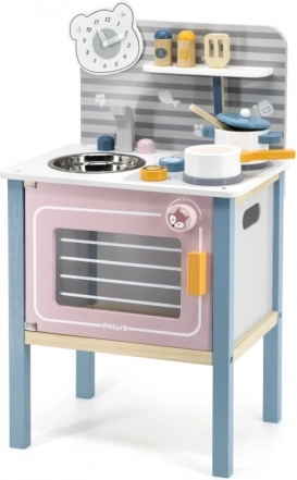 Deze keuken is gemaakt van hoogwaardig hout, waardoor hij robuust en duurzaam is en uren speelplezier biedt voor kleine koks.