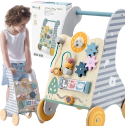 De loopwagen helpt bij het ontwikkelen van motorische vaardigheden bij kinderen dankzij de veilige constructie en interactieve onderdelen.