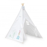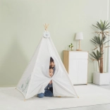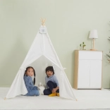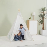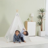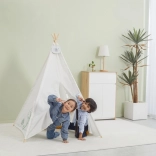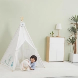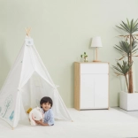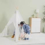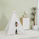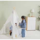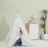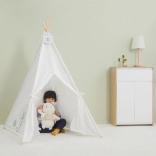 De POLARB tipi-tent verandert elke kamer in een magische plek vol fantasie. Het minimalistische design in wit met lieve diermotieven past in een modern interieur en creëert voor kinderen een rustige, inspirerende ruimte. De stevige constructie met houten stokken zorgt voor stabiliteit tijdens het spelen en je zet hem gemakkelijk op en weer neer.