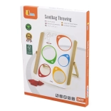 Het spel omvat een standaard met een houten frame en drie bonenzakjes, die makkelijk draagbaar zijn dankzij het inklapbare ontwerp.