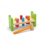 Inclusief houten hamertje en meerkleurige pinnetjes voor langdurig speelplezier.