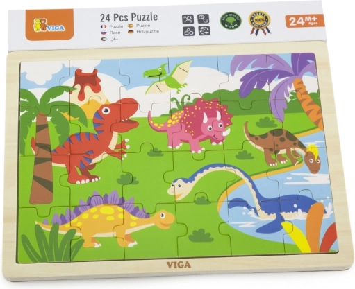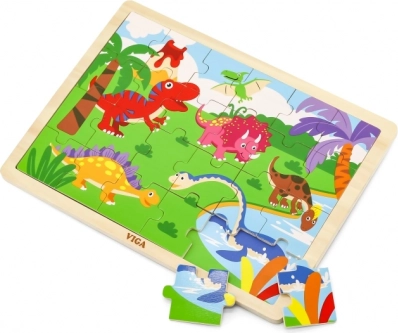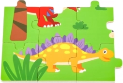 De houten puzzel met een schattig dinomotief zal alle kleine prehistorie-fans verrassen. Met 24 stukjes is de puzzel een geweldige keuze voor het eerste zelfstandige puzzelen, het ontwikkelen van oog-handcoördinatie en geduld. De hoogwaardige afwerking en gladde randen zorgen voor veilig en prettig spel.
