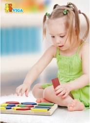 Deze houten educatieve inlegpuzzel van VIGA is het ideale speelgoed voor de eerste ontdekking van vormen en kleuren. De robuuste houten plaat met precieze uitsparingen en 18 kleurrijke stukjes leert kinderen sorteren, oog-handcoördinatie en ontwikkelt het ruimtelijk inzicht.