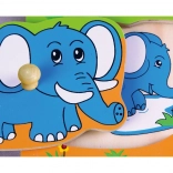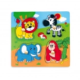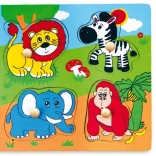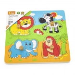 Deze kwalitatieve houten inlegpuzzel met safarithema is een ideale eerste puzzel voor peuters. Elk stukje heeft een houten knopje voor gemakkelijk vastpakken met kleine handjes en een passende silhouetvorm op de onderplaat voor eenvoudige oriëntatie.