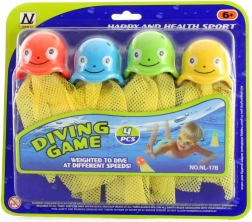 De set duikoctopusjes is een ideale hulp voor kinderen die leren duiken en hun zelfvertrouwen in het water vergroten. Dankzij de verschillende nummers op elk octopusje kun je eenvoudig spelletjes met puntentelling maken, wedstrijden organiseren en eenvoudige oefeningen doen voor coördinatie en adem inhouden. De felle kleuren zorgen voor goede zichtbaarheid onder water.