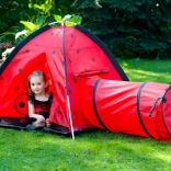 Verander een kamer of tuin in een plek vol avontuur. De kindertent met lieveheersbeestje-motief nodigt kinderen uit tot ontdekken en creatief spel. De iglo-constructie met één ingang en een aansluiting voor de tunnel stimuleert bewegen, kruipen en verstoppen, wat zowel motoriek als fantasie ontwikkelt. Dankzij het lichte frame verplaats je de tent eenvoudig, zodat kinderen er overal van kunnen genieten.