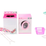 De set bevat alles wat kleine huishoud(st)ers nodig hebben: een compacte wasmachine en droger, een stabiele strijkplank met strijkijzer, een praktisch kledingrek met hangers en een wasmand. Pop en kleertjes zijn niet inbegrepen. Het speelgoed is bedoeld voor kinderen vanaf 3 jaar.