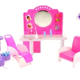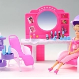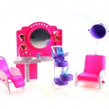 De stijlvolle speelset Glorie kapperssalon bezorgt kinderen veel plezier bij het naspelen van een kapsalon. Bevat een kaptafel met spiegel en wasbak, comfortabele kappersstoelen, een trolley met vakjes en allerlei accessoires voor haarstyling, zoals kammetjes, borstels en flesjes. Gemaakt van duurzaam plastic. Pop niet inbegrepen. Geschikt voor kinderen vanaf 3 jaar.