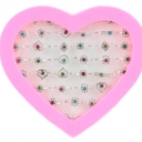 Een stijlvolle set kinder ringen met glinsterende steentjes die kleine stylisten zal verheugen. De ringen zijn verstelbaar, waardoor ze zich makkelijk aanpassen aan kinder vingers. De praktische verpakking bevat 36 stuks en is ideaal voor feestjes, cadeausets of als kleine beloning.
