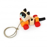 Het houten trekspeelgoed, ontworpen in de vorm van een vrolijk kitten, is ideaal voor plezier en voor de ontwikkeling van motorische vaardigheden van kinderen. Het speelgoed is uitgerust met een beweegbare romp en wielen, wat zorgt voor vloeiende en leuke bewegingen tijdens het trekken aan het koordje. Het kleurrijke design trekt de aandacht van kinderen en moedigt hen aan tot actief spel.