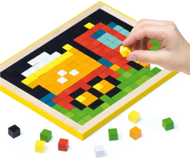 CUBIKA is een nieuw merk houten speelgoed, gemaakt uitsluitend van ecologisch geteeld hout, met zeer precieze afwerking en een aantrekkelijk design. Pixel IV auto’s is een houten mozaïek met 400 steentjes van 1 x 1 cm, 7 thematische voorbeelden en een houten frame. Kennis van kleuren en een beetje geduld zijn voldoende om van de afzonderlijke gekleurde steentjes prachtige afbeeldingen te maken. Het assortiment speelgoed van het merk CUBIKA helpt kinderen vooral bij de ontwikkeling van sensomotorische vaardigheden, logisch denken, creativiteit, verbeeldingskracht en diverse cognitieve kennis. Het speelgoed is vervaardigd van hoogwaardig esdoorn- en beukenhout en voor de kleuring worden eveneens hoogwaardige watergedragen verven gebruikt, die volledig veilig zijn voor kinderen en geurloos. Alle producten van dit merk hebben het Duitse TÜV-certificaat en zijn geproduceerd volgens de Europese speelgoedveiligheidsnorm EN 71. Niet geschikt voor kinderen jonger dan 5 jaar. Gemaakt in Europa.