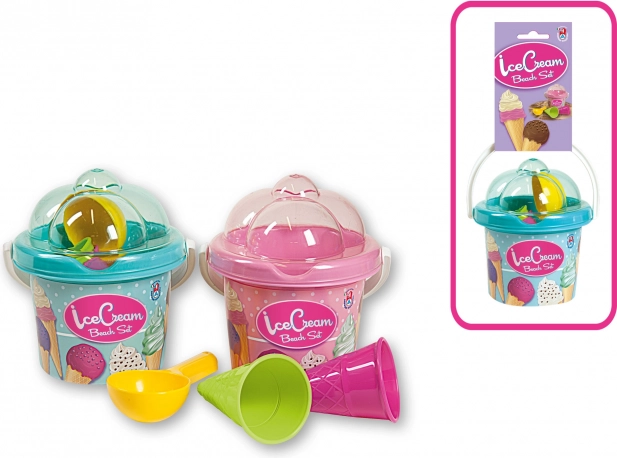 Een schattige zandset voor kinderen in ijsjesstijl die elke kleine bouwer zal verrassen. Bevat een emmer met deksel in de vorm van een coupe, een ijslepel en 2 hoorntjes. Gemaakt in Italië van hoogwaardige kunststof, ideaal voor kinderen vanaf 12 maanden. Licht, compact en perfect voor zowel zandbak als strand.
